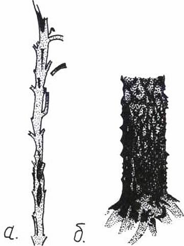 Такие находки действительно есть, и они очень напоминают отпечатки обрывков небольших, толщиной несколько миллиметров, стеблей плауновидных. Наиболее известные из них – это Bojophyton pragenseиз морских отложений ордовика Чехии (рис. 16, а) и раннекембрийский Aldanophyton, найденный на северо-востоке нашей страны (рис. 16, б). Бойофитон пражский был описан чешским учёным И. Обргелом, а алданофитон – советским палеоботаником А. Н. Криштофовичем. К сожалению, даже после тщательных исследований, учёные не признали эти ископаемые достоверными остатками высших растений. Для прояснения вопроса с алданофитоном даже была организована конференция в Новосибирске. Очень авторитетные палеоботаники изучали образцы всеми доступными тогда методами. Какой же был сделан вывод? По меткому определению Мейена «заключение было единодушным: алданофит – это неизвестно что». Но есть и другие находки. В породах ордовикского возраста в 60-х годах прошлого века чешскими и польскими палеонтологами были найдены остатки растений, также напоминающие своим обликом плауновидные. Это роды Krejciella, Musciphytonи Hepaticaephyton.Совсем недавно, на берегу реки Волхов, в ордовикских известняках, российским палеоботаником С. В. Наугольных были найдены образцы, очень похожие на остатки высшего растения. Они представляют собой отпечатки небольших неветвящихся побегов с одиночными округлыми спорангиями на концах. Это растение получило название Volkhoviella primitivo.