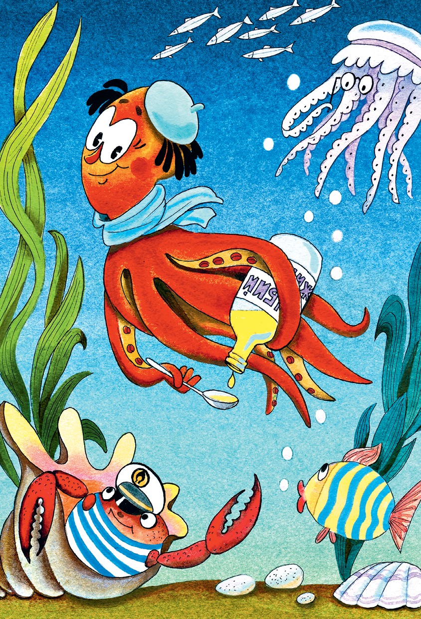 всё теперь в порядке.Но какой-то карапузГде-то раздобыл рогаткуИ давай стрелять в медуз.Папа изловил стрелкаИ поколотил слегка.А это был вовсеНе папин сынок,А просто соседскийЧужой осьминог.