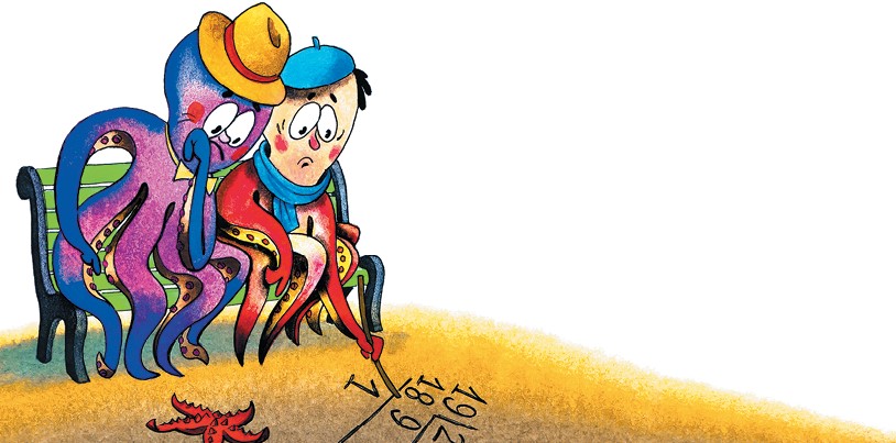 Солнце греетПуще печки,Папа дремлетНа крылечке,А детишки-осьминожкиЧто-то чертят на дорожке.Палка,Палка,Огуречик,Вот и вышел человекек,А теперьДобавим ножек…Получился осьминожек!Тишина на дне морском.Вот пробрался краб ползком.Круглый, словно сковородка,Скат проплыл невдалеке.Всюду крутятся селёдки,Звёзды дремлют на песке.Словом,