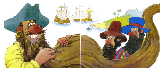 Один пират никогда не брился. И выросла у него такая длинная борода, что расчёсывала её на палубе вся команда. А потом скатывала её в трубочку, стягивала крепким кожаным ремнём с большой медной пряжкой. Так пират свою бороду на привязи и носил.