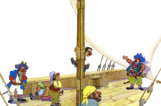— Если будешь драться, буду я кусаться! — сверкнул глазами второй пират, тряся своим мизинцем мизинец первого.