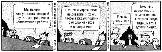 Этот конкретный случай слепого доверия окончился благополучно для обеих сторон, и из него можно даже извлечь некоторые уроки. Однако в целом такой подход весьма рискован, и, как правило, подобный образ поведения в мире, где уровень доверия в целом низкий, представляется не самым благоразумным.