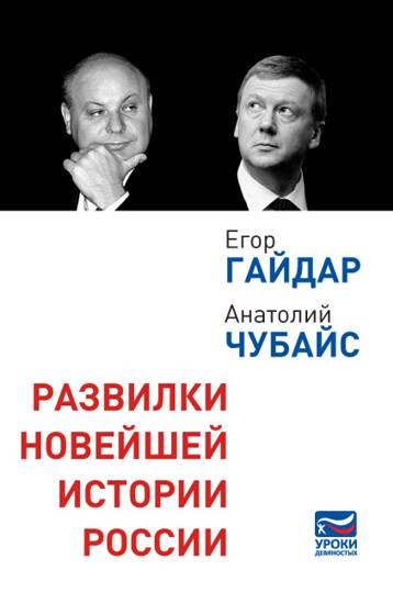 Подобно этому сходные идеи излагаются в книге Е. Гайдара и А. Чубайса. Только здесь берется за основу исторический материал, рассматриваются важнейшие развилки российской истории 1929—2009 гг. и показываются обстоятельства их прохождения — выбор политических решений и последствия, включая институты, складывающиеся в результате. Результатом политических решений, принятых в конце 20-х годов — начале 30-х годов, стала советская планово-административная экономика, нарастание кризиса которой привело к развилкам 90-х. Решения 1992—1993 гг. привели к созданию в России рыночной экономики, ставшей новым этапом в развитии страны.