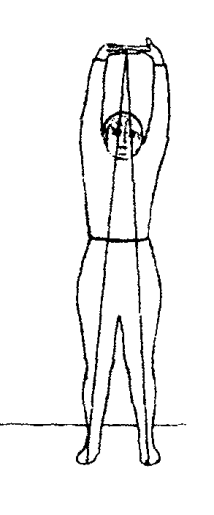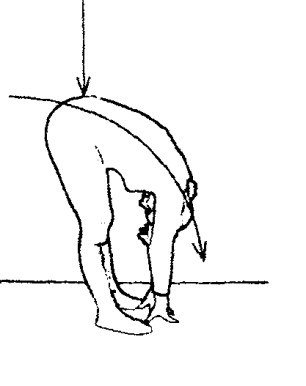 Наклон вперёд «Насос»: спина прямая, руки подняты над головой, ладони соединены. Подгибаем голову к груди, на сколько можно ближе. Руки двигаются вместе с телом, закрывая предплечьями уши. При выполнении упражнения каждый позвонок, в какой-то промежуток времени будет самым верхним. Это упражнение обучает управлению мышцами