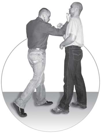 Апперкот – очень узнаваемый удар, которым заканчивается не один поединок в телевизионном боксе и фильмах о боевых искусствах (рис. 4). Рука дугообразно идет вверх от твоего корпуса и целится в подбородок снизу или в корпус противника – в печень, селезенку, под дых. При этом враг буквально «надевается» на кулак, а твоя бьющая рука одновременно защищает тебя от контратаки в корпус. При апперкоте не нужно разгибать руку до конца – она должна продолжать как бы опираться на корпус, сообщающий ей дополнительное усилие. Если будешь бить апперкот с неподходящей дистанции и рука слишком сильно распрямится, большая часть твоего импульса пройдет как бы «мимо» цели. Преимущество апперкота в том, что от него очень сложно защититься, а недостаток – в близкой дистанции, с которой его нужно проводить.