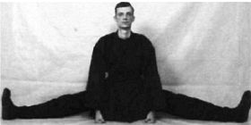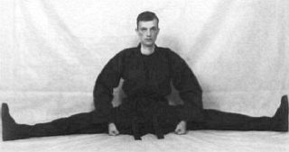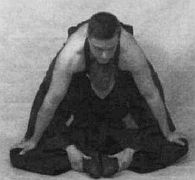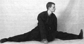 Примечание: в этом упражнении полезно, если тренер или напарник будет осторожно нажимать вам на колени, помогая максимально растянуть паховые связки.