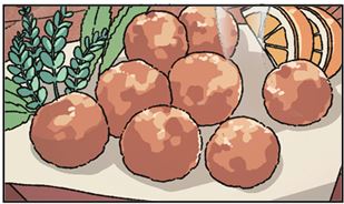 Тохваран слепила ещё несколько шариков, а оставшийся кусочек смеси бросила в масло. Он ударился о дно и тут же всплыл на поверхность.