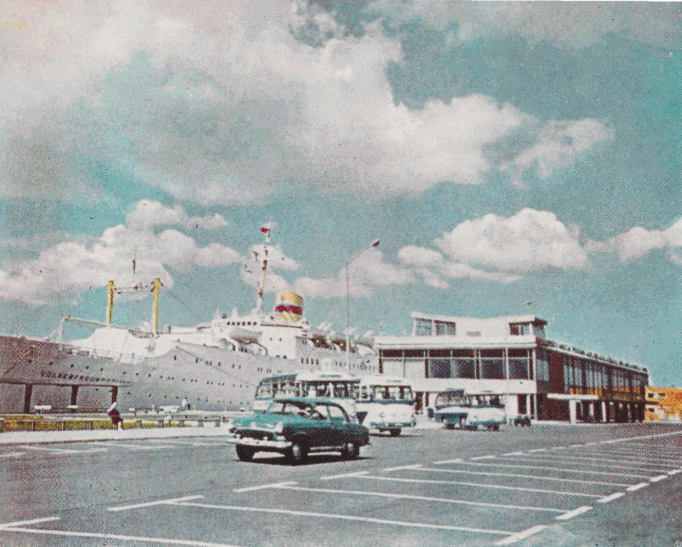 И, наконец, еще одни «ворота» города - для пассажиров, прибывающих морем. Рижский морской пассажирский вокзал первых гостей встретил в лето 25-й годовщины Советской Латвии. Рижане, даже те, кого не влекут дальние странствия, охотно заглядывают сюда с друзьями: посидеть в кафе или ресторане, потанцевать.