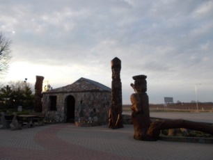 Ресторанчик выглядел оригинально: вход украшен деревянной скульптурой, центральная фигура ансамбля – фигура ведьмы управляющей повозкой. На стене ресторанчика, выходящей на хозяйственный дворик,