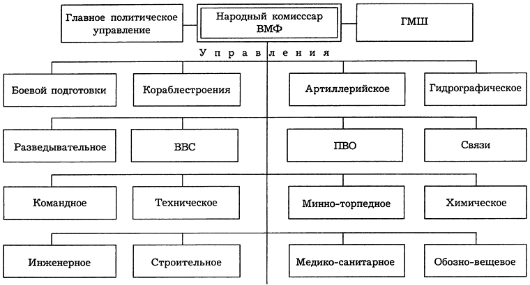 — перевозка войск и грузов. Непосредственное управление флотом осуществлял народный комиссар ВМФ, в подчинении которого находились Главный морской штаб, центральные управления Наркомата, Военно-морские академии, флоты и флотилии. С 28 апреля 1939 года Наркомат ВМФ возглавил Н.Г. Кузнецов.