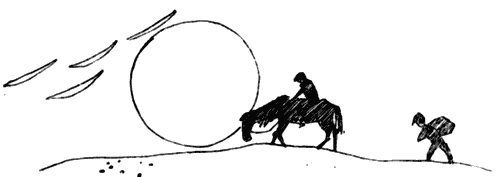День в разгаре. Яшка совсем раскис. Он ковыляет где-то позади. Я останавливаюсь, поджидаю его. Кобыла тычется мордой мне в спину и замирает, низко опустив голову и расставив ноги. Подходит Яшка, поднимает на меня мутные глаза, отирает рукавом пот с распаренного лица и молча садится на землю.