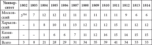 Приглашаемые в российские университеты профессора учитываются с момента их приезда в Россию (даже если, как в Казани и Харькове, оно опережало официальное открытие университета).