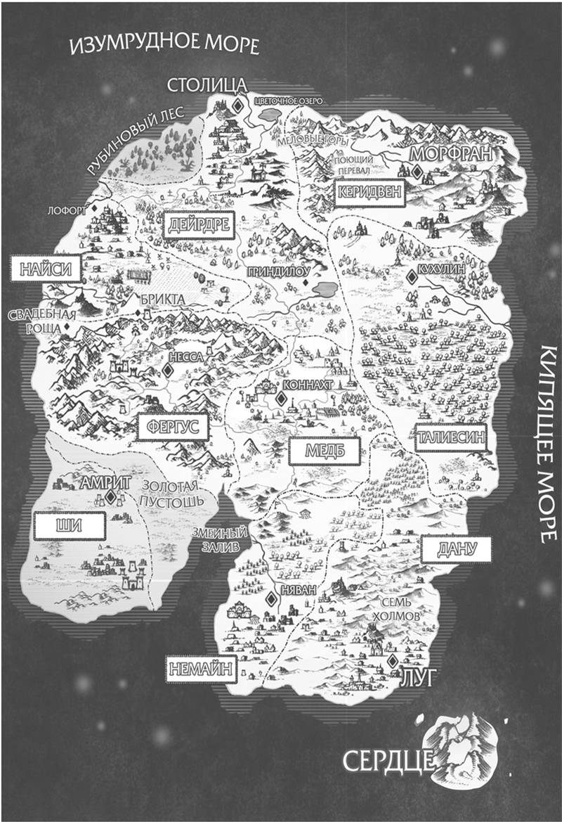 Дикие земли – неосвоенная земля, расположенная далеко за Изумрудным морем, плавание до которой, по слухам, занимает два месяца и более. Там живут людоеды и одичалые драконы, избравшие звериный образ жизни, какого придерживались их предки до союза с Великой королевой Дейрдре.