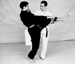 Выполняется, когда противник стоит в прямой фронтальной стойке, приблизив ноги к атакующему.