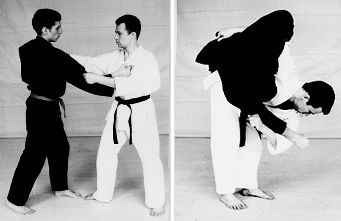 Бросок через бедро с захватом двух рук