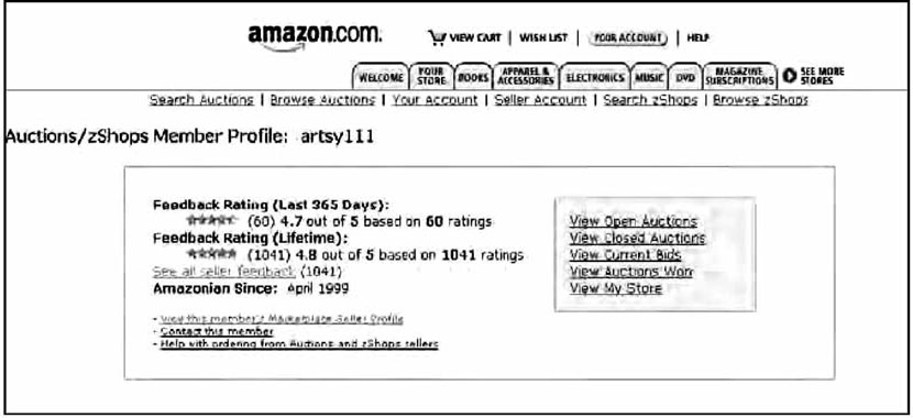 Скриншот 18.2a показывает информацию, отображаемую в профиле пользователя Amazon (по данным на сентябрь 2005 г.).
