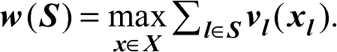 Покажем, как аукцион с удаленными ставками приводит к оптимальному распределению лотов согласно заявленным предпочтениям. Определим кооперативную игру (L, ), где L - это множество игроков (7= 0 является закупщиком, а все остальные – участники торгов), а w(S) – это значение коалиции 5. Пусть выражает множество возможных распределений лотов (х])1е1- Если 5 не включает закупщика, тогда w(S) = О/если 5включает закупщика, то