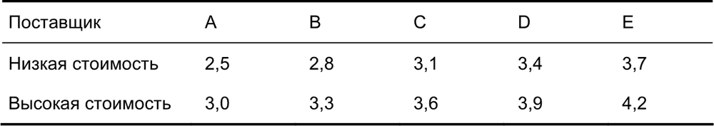 Пример 13.3. описывает ситуацию, которая очень распространена в закупках: с одной стороны, есть ряд «здоровых» поставщиков (те, кто в примере заявляет 3), которые всегда могут завершить проект и подают заявки в районе ожидаемой стоимости. С другой стороны, существуют некоторые потенциально неплатежеспособные поставщики, которые могут выиграть контракт, подавая заявки явно ниже ожидаемой стоимости. Эти низкие заявки называют аномально низкими предложениями (АНП) [326] .
