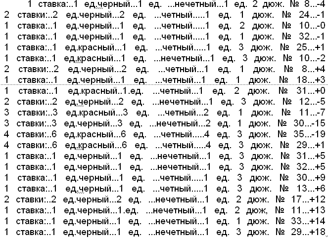 2 ставки:..2 ед. черный…2 ед…четный…. 1 ед. 1 дюж. № 13…-3 Возвращение к 1 ставке: