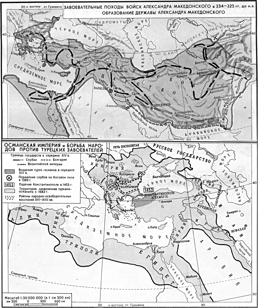 Рис. 21. Сравнение завоеваний «античного» Александра Македонского и средневековых османских завоеваний XV–XVI веков. Европейские и средиземноморские границы обоих завоеваний практически совпадают