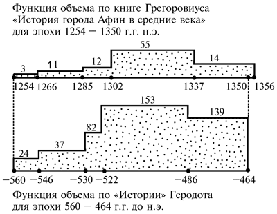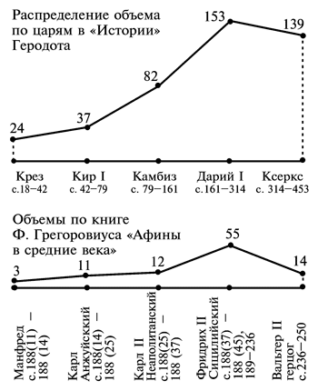 Сравнение усредненных графиков объемов книг Грегоровиуса и Геродота см. на рис. 23.