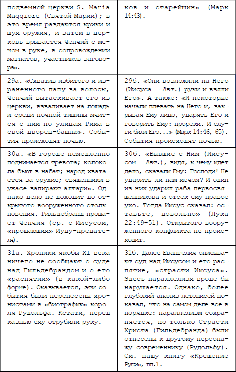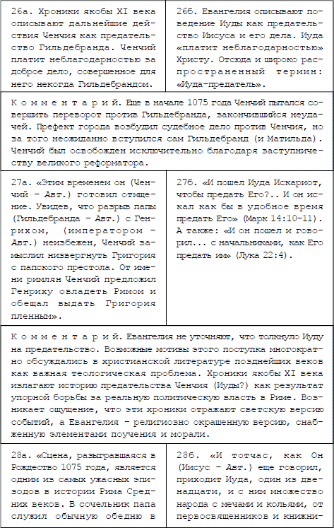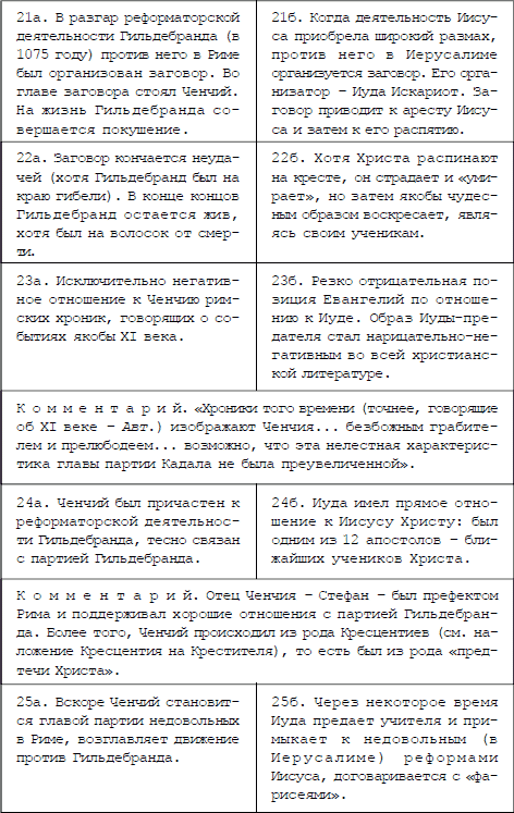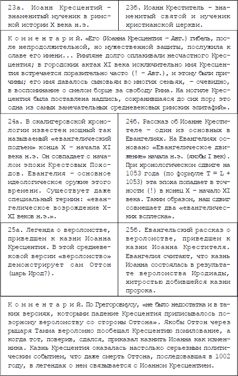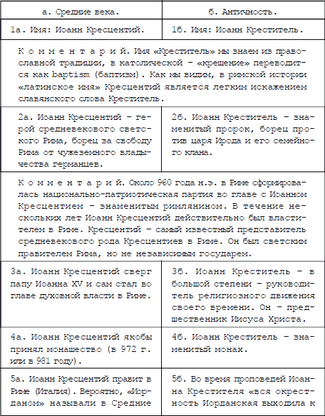 Излагая параллелизм, мы будем особенно подробно останавливаться на его «средневековой половине», поскольку «античная половина» изложена в Евангелиях и потому широко известна. Средневековая же версия малоизвестна широкому читателю, а с точки зрения обнаруженного А.Т. Фоменко параллелизма она весьма важна и интересна.