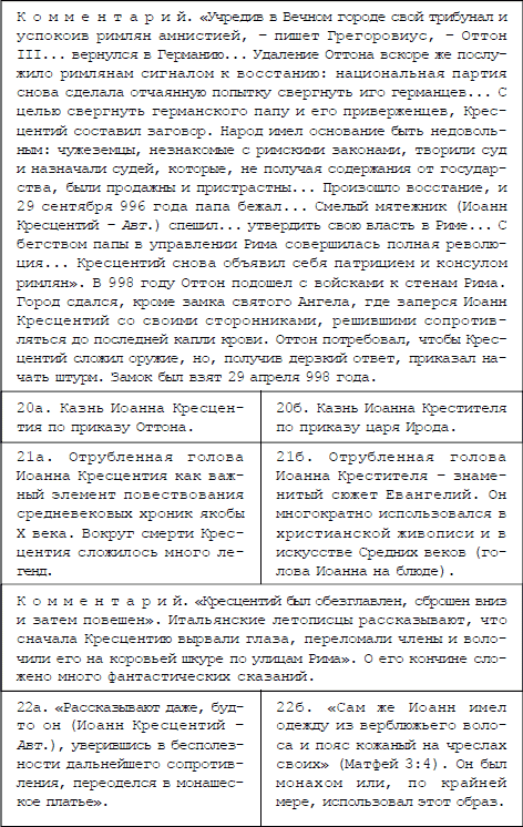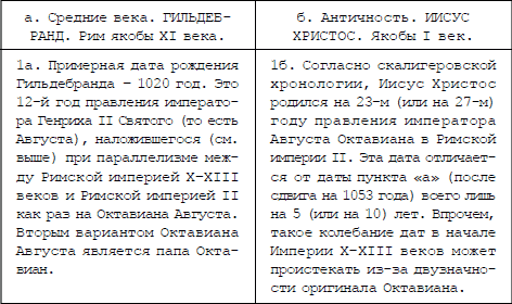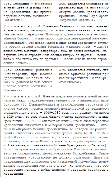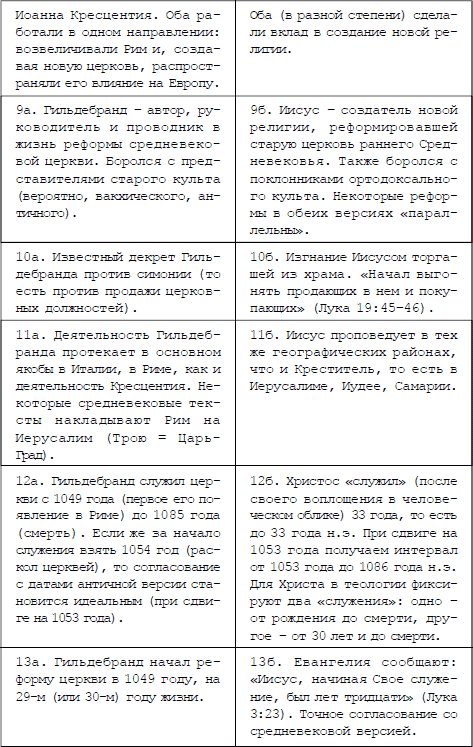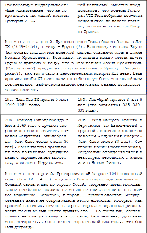 Действие формулы Т = L + 1053 было прослежено А.Т. Фоменко на протяжении тысячи лет римской истории. Двигаясь вверх по этому параллелизму, мы наконец подходим к «началу нашей эры». Что же мы увидим? Ответ дается приводимыми ниже «биографическими склейками». Рассказывая о событиях якобы X века, мы часто будем ссылаться на книгу Ф. Грегоровиуса «История города Рима в средние века».
