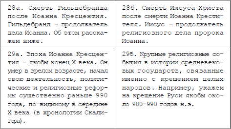Изложим вкратце событийный параллелизм. В таблице 2 мы используем также сведения о Гильдебранде, взятые из той же книги Грегоровиуса «История города Рима в средние века».