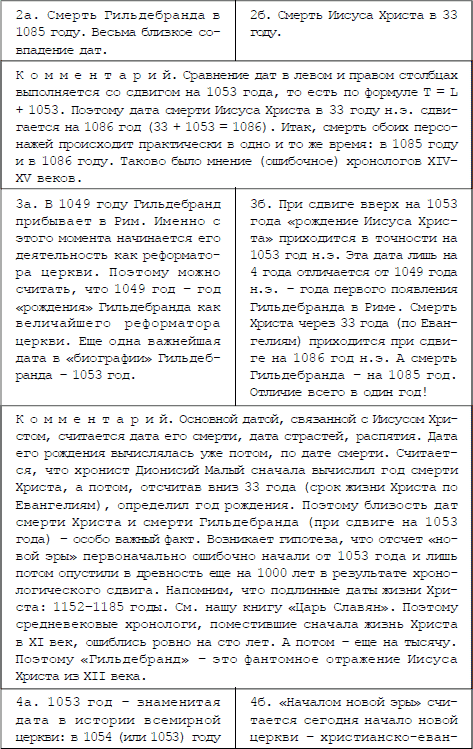 Таблица 2Отметим, что при хронологическом сдвиге вниз на 720 лет (то есть на разность двух основных сдвигов: 720 = 1053 – 333) мы получаем, что Гильдебранд накладывается на знаменитого святого Василия Великого (Великого Царя). При этом 1053 год опускается вниз и превращается в 333 год (так как 1053 – 720 = 333). Но это в точности (!) год рождения Василия Великого.