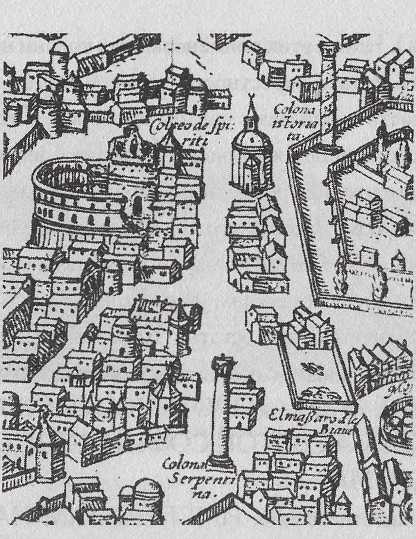 колонны (Colona Serpentina) и совсем рядом с Исторической колонной (Colona istoriata). Последняя нарисована несколько дальше от храма Святой Софии, чем Змеиная колонна. Еще ближе к храму Святой Софии показана Колонна на площади (Piaza