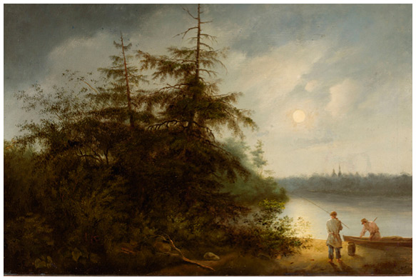 Ночной пейзаж с рыбаками. Картина Федора Алексеева. 1821 г.