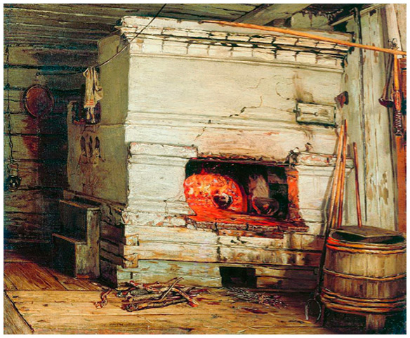 В крестьянской избе зимой.