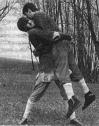 Однако, если сделать шаг к раскрепощению этой системы, например, ввести подножки и подсечки и разрешить смену хвата в процессе борьбы, прикладной эффект и зрелищность этой борьбы значительно возрастут. [14]