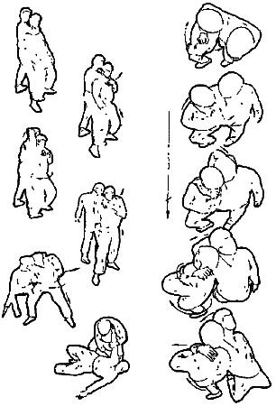 — популярные в дзю-до удушающие захваты за ворот одежды основаны на национальных особенностях костюма кимоно с широкими свободными отворотами, поэтому в наших условиях при застегивающихся отворотах, толстых воротниках и замерзающих пальцах не стоит злоупотреблять экзотическими приемами.