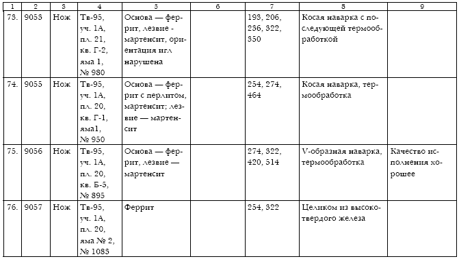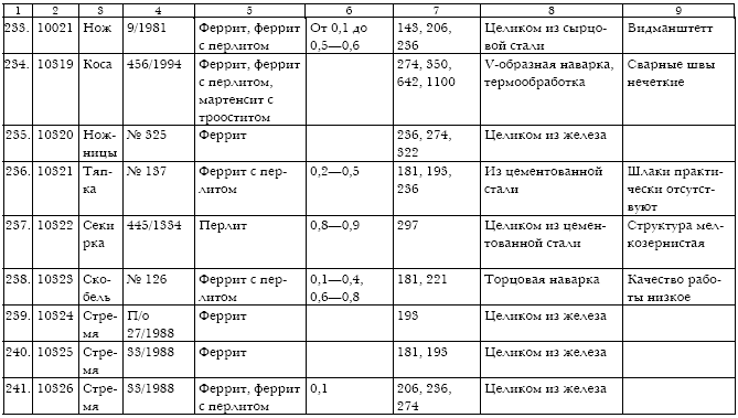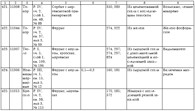 It must be also noted that the tradition of producing objects with welded-on cutting edges survived. In Pskov such artefacts make up around 35 % of the total. The picture observed in the Byelorussian urban centres looks similar (Gurin 2000: 153). Evidently, in the 16th— 17thcc. this group of production was considered expensive, and, possibly, was made to order. It should be pointed out that some objects with welded-on working edges were produced until the mid 19thc. (Завьялов 1990: 154, 1998: 49).