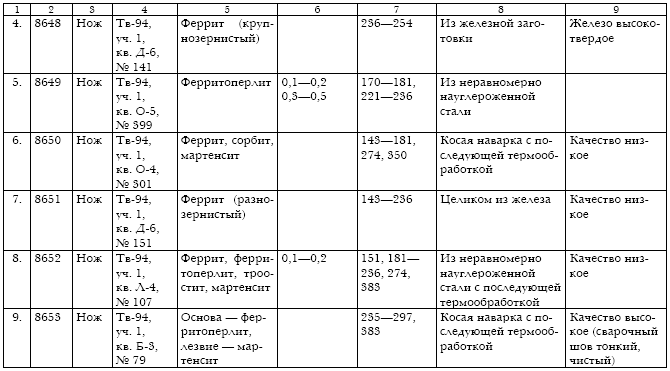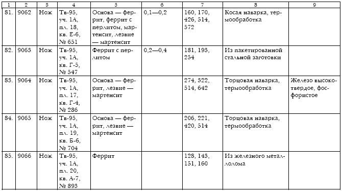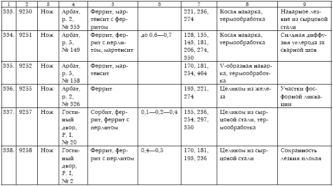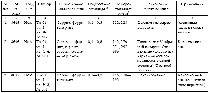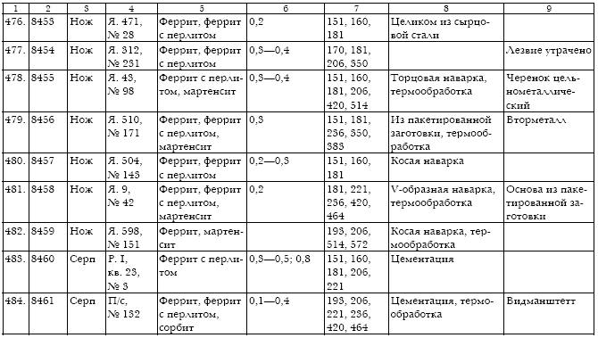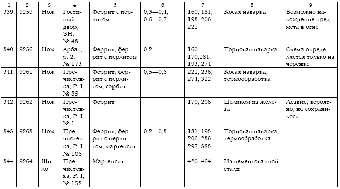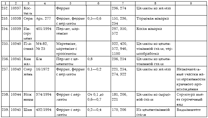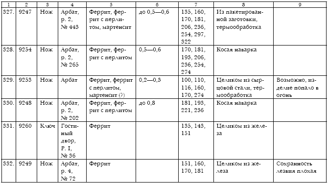 We have undertaken some investigations of development of the blacksmith’s craft in the conditions of the Russian centralised state, drawing up the materials of the 16th— 17thcc. Unfortunately, our data concerning this period are much more limited than those from the earlier time. Still, such outstanding sites as Pskov and Moscow are represented by significant series of metallographic analyses and help to shape an idea on certain trends in development of the blacksmith’s craft in the Muscovite state. As a result of the performed investigation it can be said that this period was marked by domination of solid-steel constructions in blacksmith’s production. This phenomenon is related to some qualitative changes in production of ferrous metal — transition to the deliberate production of uklad– steel (bloomery steel). Introduction of this material opened wide prospects for manufacturing high-quality production with minimal expenses, which met the demands of the newly emerged all-Russian market. Whether the obtained data reflect the general situation in Russia is the point of the forthcoming researches. Anyway, the coeval materials from Vitebsk, Polotsk and Zaslavl in Byelorussia show the spread of similar technological schemes (Gurin 2000: 152–153).