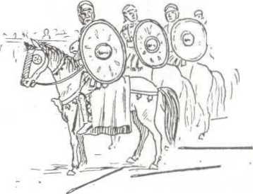 напора врага, который преследовал бегущих; наконец, оба короля, окруженные отборным юношеством, кидались друг на друга, уставив копья вперед, и, подражая колебанию настоящей битвы, то та, то другая сторона обращалась в бегство. Зрелище было удивительное по своему блеску и господствующему порядку: так что при всей многочисленности участвовавших и при разнообразии народностей никто не осмеливался нанести другому рану или обидеть его бранным словом, что обыкновенно случается даже при самом малочисленном сборище и притом состоящем из людей, знакомых друг с другом»2.