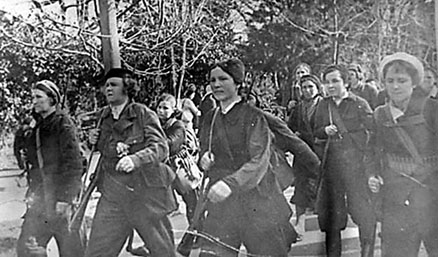 Началась массовая мобилизация в советскую армию девушек (в войска связи, войска ПВО, медицинские, тыловые части и т. д.). Многие из молодых жителей столицы и других городов 1921–1926 гг. рождения никогда так и не станут матерями, бабушками…Отряд девушек-добровольцев. Сочи, 1942 г.