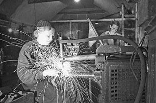 Севастополь. Электросварщица – стахановка Гречихина, награжденная орденом «Красная Звезда». 1942 г.
