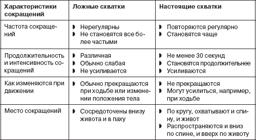 Эти сокращения также называют ложными схватками. Они сильно отличаются от настоящих схваток. Ложные схватки нерегулярны, различаются по силе и продолжительности. Настоящие схватки ритмичны, постепенно становясь продолжительнее, сильнее и чаще – все это одновременно.