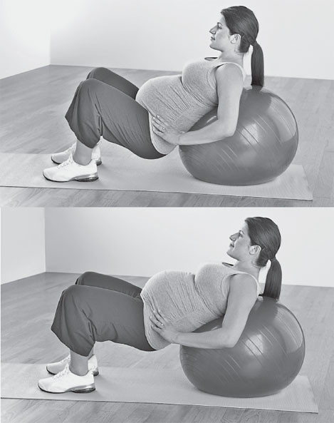 1. Сядьте на пол, опираясь спиной на мяч для фитнеса, ступни на полу, руки на боках.