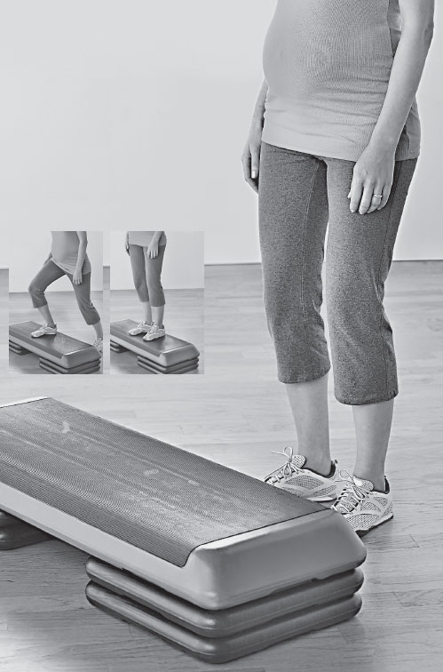 1. Держа спину прямо, осторожно шагните на невысокую скамеечку и остановитесь