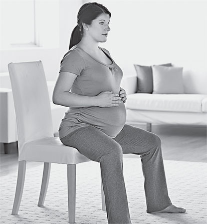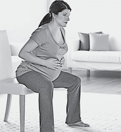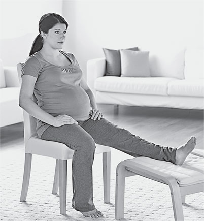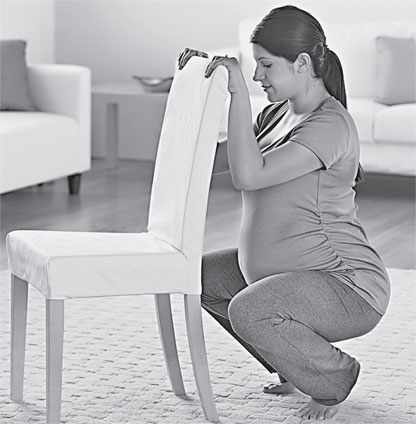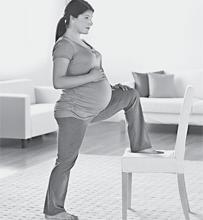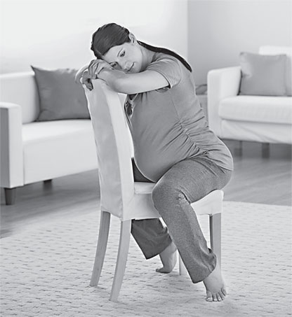 Наклоны вперед. Поставьте одну ногу на прочный стул. При схватке осторожно наклоняйтесь к поднятой ноге. Если стул слишком высокий, используйте скамеечку для ног.
