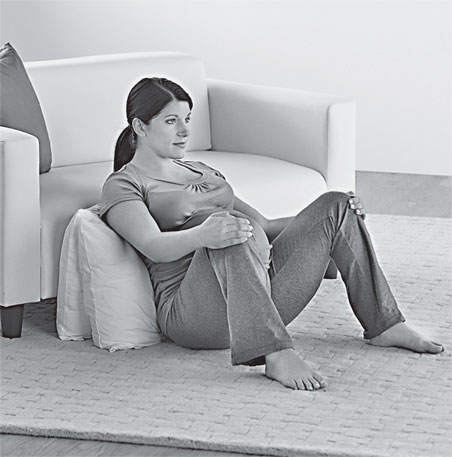 Полулежа. Подложите под спину подушки или попросите партнера сесть сзади, чтобы вы могли на него опираться. Во время каждой схватки наклоняйтесь вперед, притягивая к себе колени.