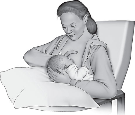 Найдите удобное положение. И вам, и ребенку должно быть удобно. На постели или на стуле сядьте прямо. Под спину подложите подушку. Стул лучше выбирать с подлокотниками, или можно тоже подложить подушку.