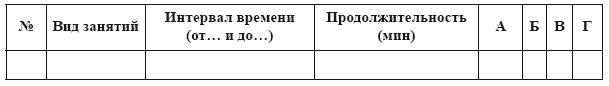 Поначалу не заполняйте колонки, обозначенные буквами А, Б, В и Г. Они понадобятся при заключительном анализе расхода времени.