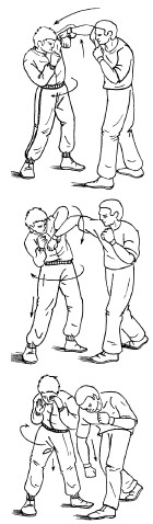 Естественными инстинктивными движениями при ударе в голову являются наклон головы и подъем руки вверх для создания блока. Рассмотрим пример бокового удара в голову правым кулаком. При таком ударе вектор силы проходит по окружности слева направо в плоскости, параллельной земле.