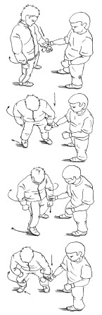 Рис. 19. Освобождение от захвата за руку одной рукой вращением предплечья