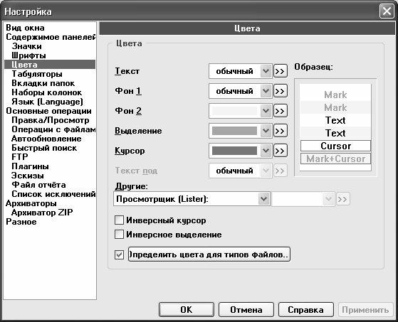 Рис. 4.14. Настройка цветового оформления Total Commander