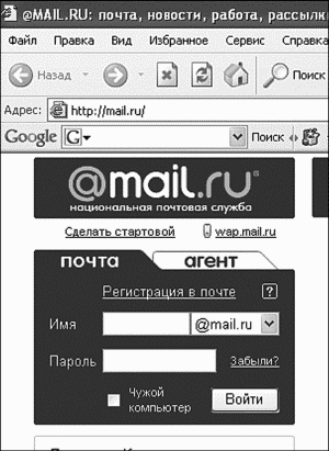 Лично мне больше всего нравится почтовая система Mail.Ru (www.mail.ru), может быть потому, что привык к ней — пользуюсь с 1999 года. Создать ящик на Mail.Ru очень просто: